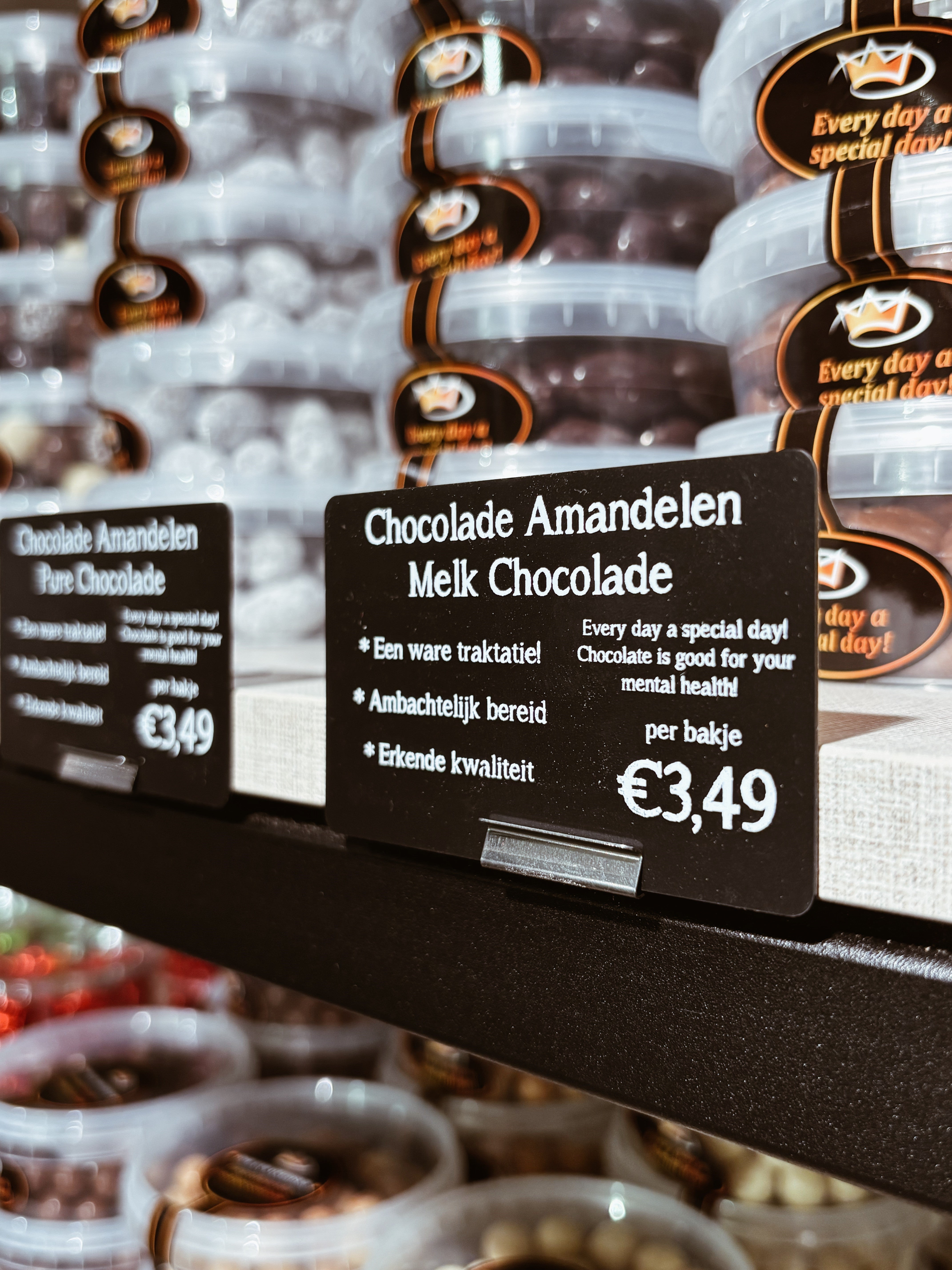 Prijskaartklem van RVS, geschikt voor op een horizontale plank.