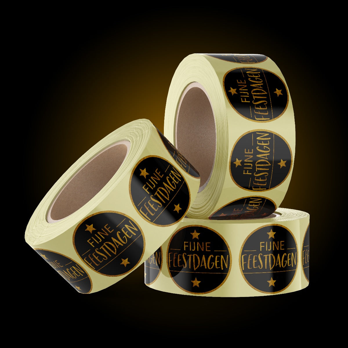 Ronde stickers op de rol (500st) "Fijne Feestdagen".