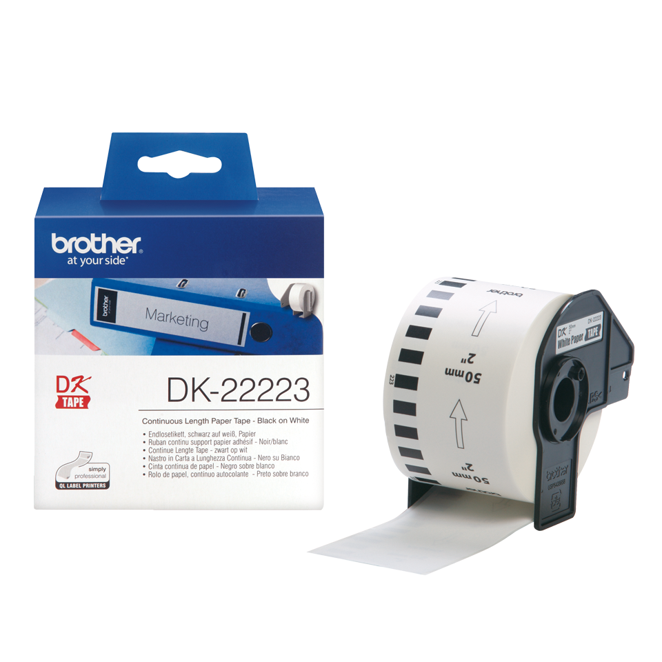 Brother adreslabel DK-22223, 50mm doorlopend (400st), zwart op wit doorlopende labelrol, papier, breedte 50 mm en lengte 30,48 meter